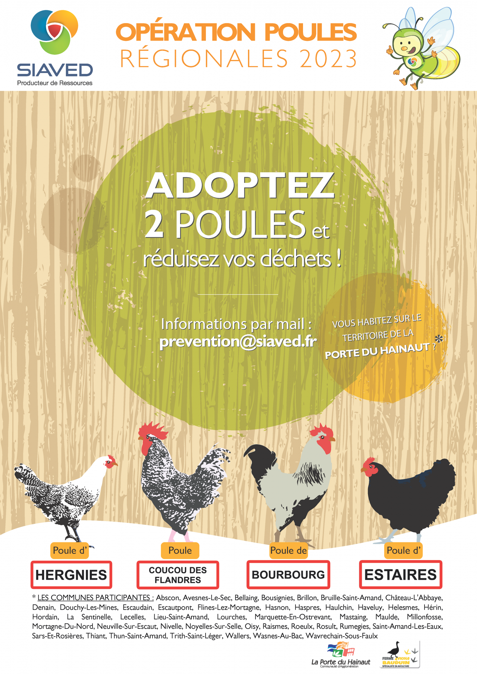 • Le bon de commande est à retourner avant le vendredi 2 mai 2025 par courrier à "Service Prévention, Opération Poules Régionales, SIAVED - 5 route de Lourches, 59282 DOUCHY-LES-MINES"